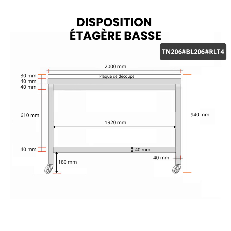 - 1 étagère basse inox fournie