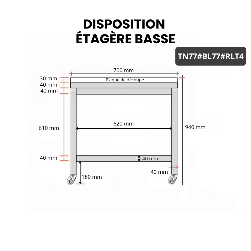 - Table de travail professionnelle en acier inoxydable AISI 304 haut de gamme et plaque de découpe en polyéthylène blanche alimentaire