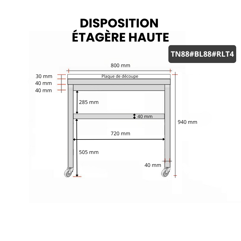 - 1 étagère basse inox fournie