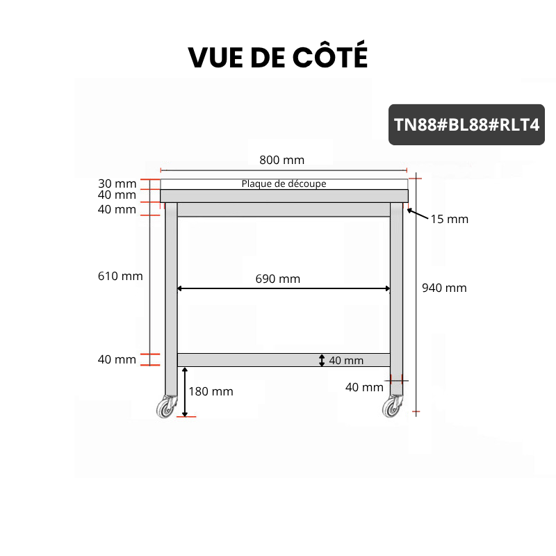 Table de travail en inox 800x800 mm avec plaque de découpe blanche sur roulettes PREMIUM - GOLDINOX