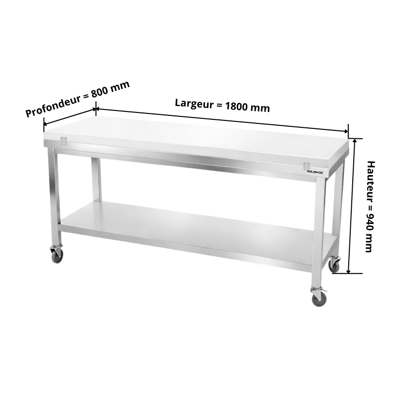 Table de travail en inox 1800x800 mm avec plaque de découpe blanche sur roulettes PREMIUM - GOLDINOX