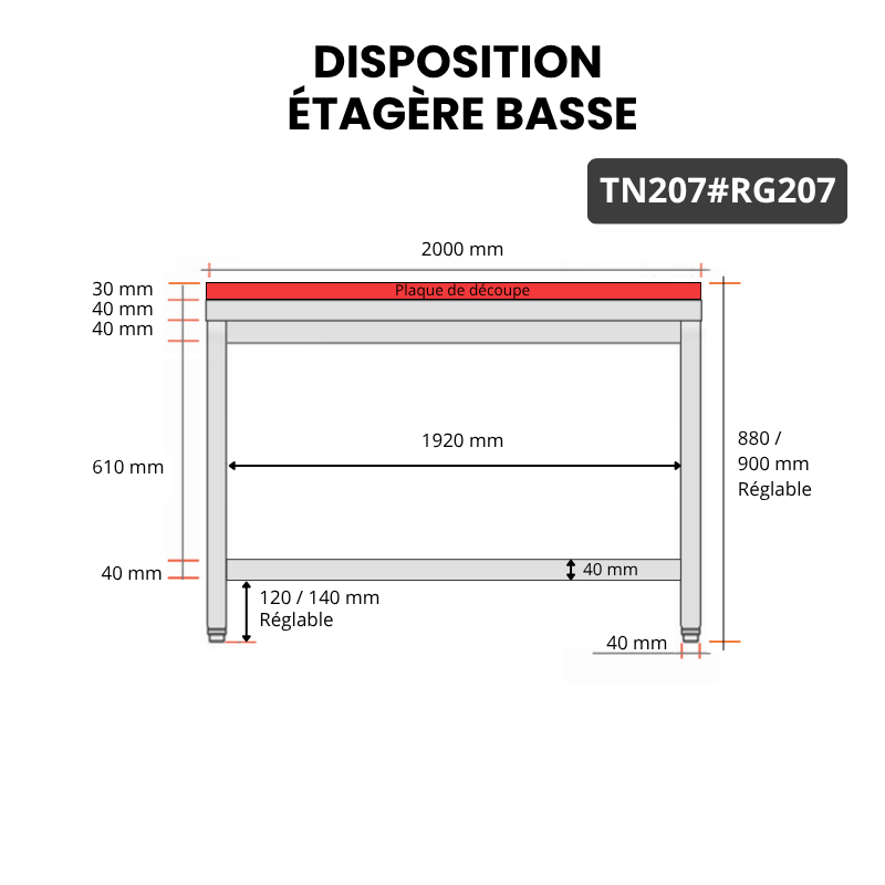 Table de travail en inox 2000x700 mm avec plaque de découpe rouge PREMIUM - GOLDINOX
