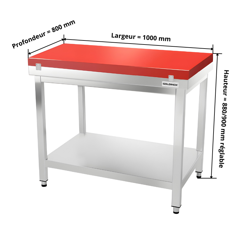Table de travail en inox 1000x800 mm avec plaque de découpe rouge PREMIUM - GOLDINOX
