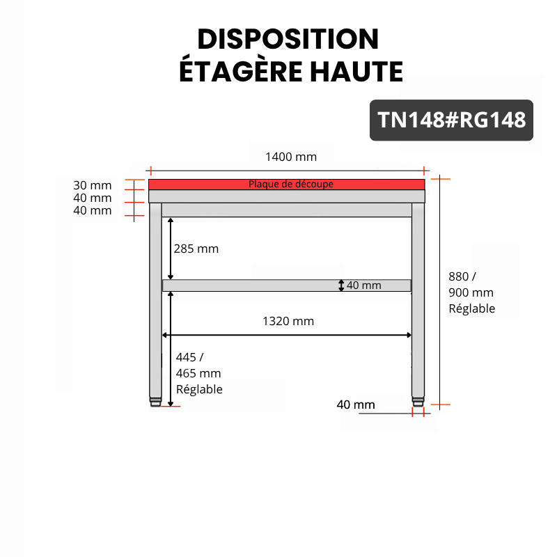 Table de travail en inox 1400x800 mm avec plaque de découpe rouge PREMIUM - GOLDINOX