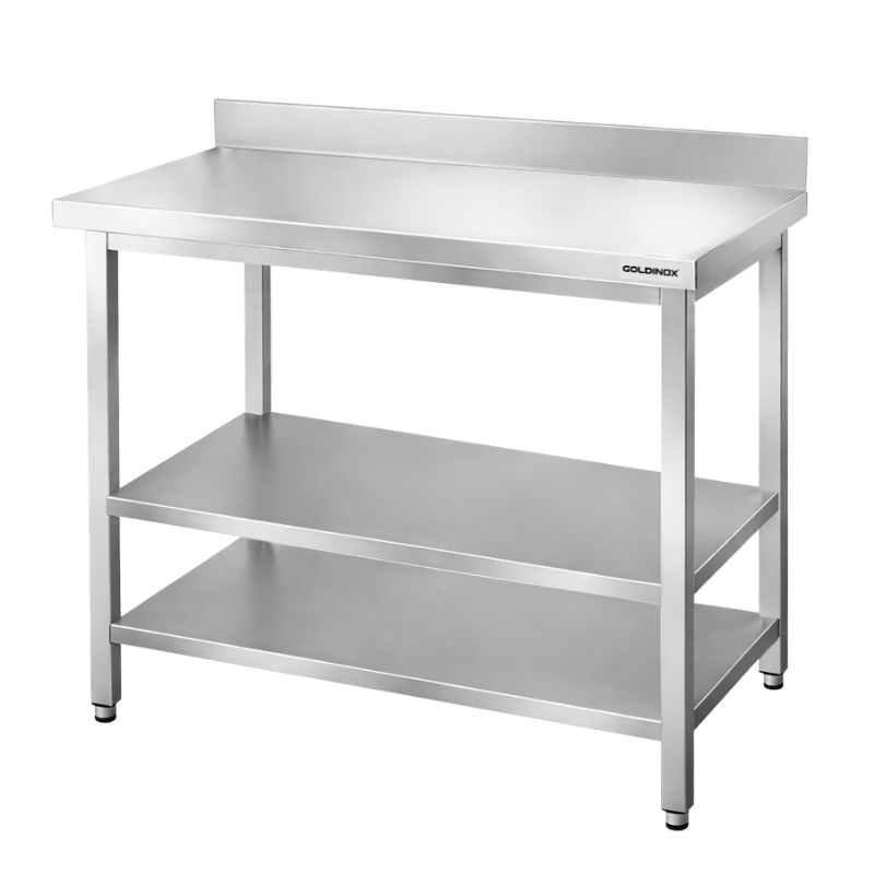Table de travail en inox Bar 1200x800 mm avec 2 étagères inférieures et dosseret PREMIUM - GOLDINOX