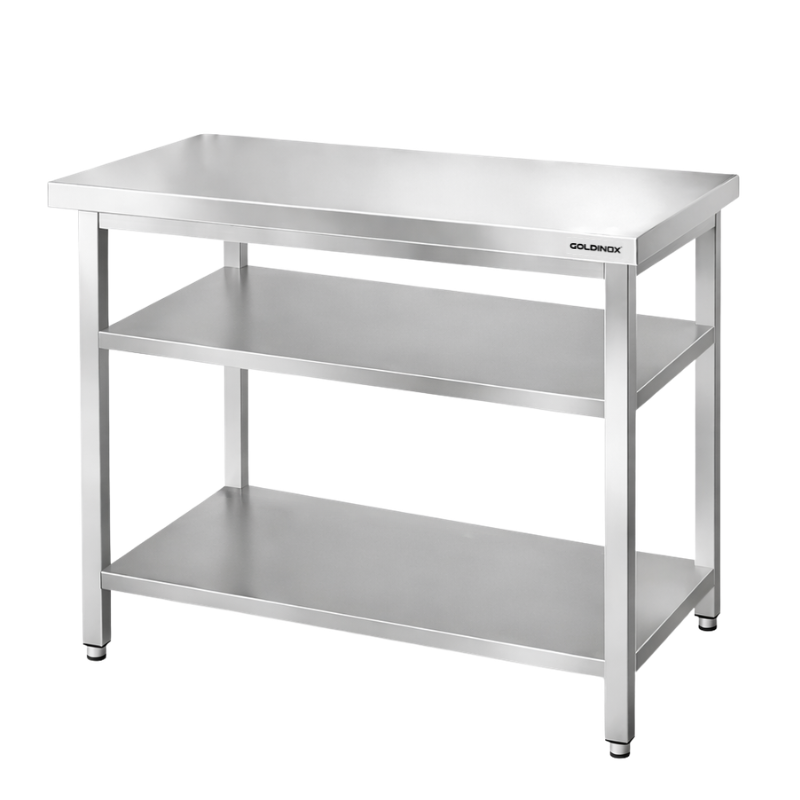 Table de travail en inox Bar 1200x600 mm avec 2 étagères inférieures PREMIUM - GOLDINOX