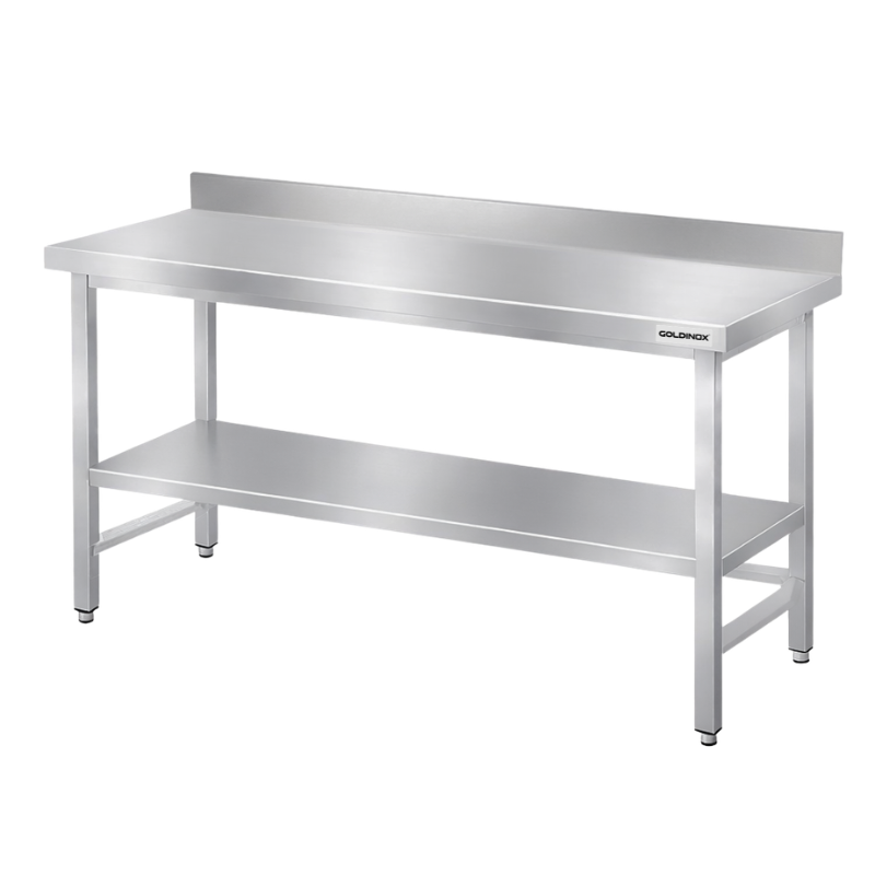 Table de travail en inox Bar 1600x500 mm avec renfort et dosseret PREMIUM - GOLDINOX