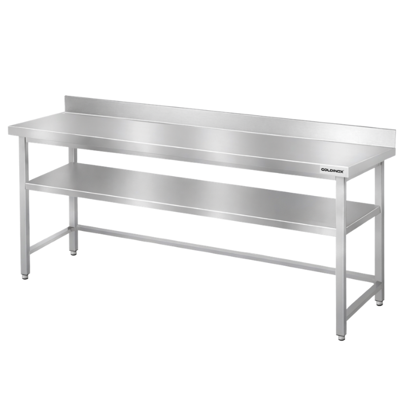 Table de travail en inox Bar 1800x600 mm avec renfort et dosseret PREMIUM - GOLDINOX