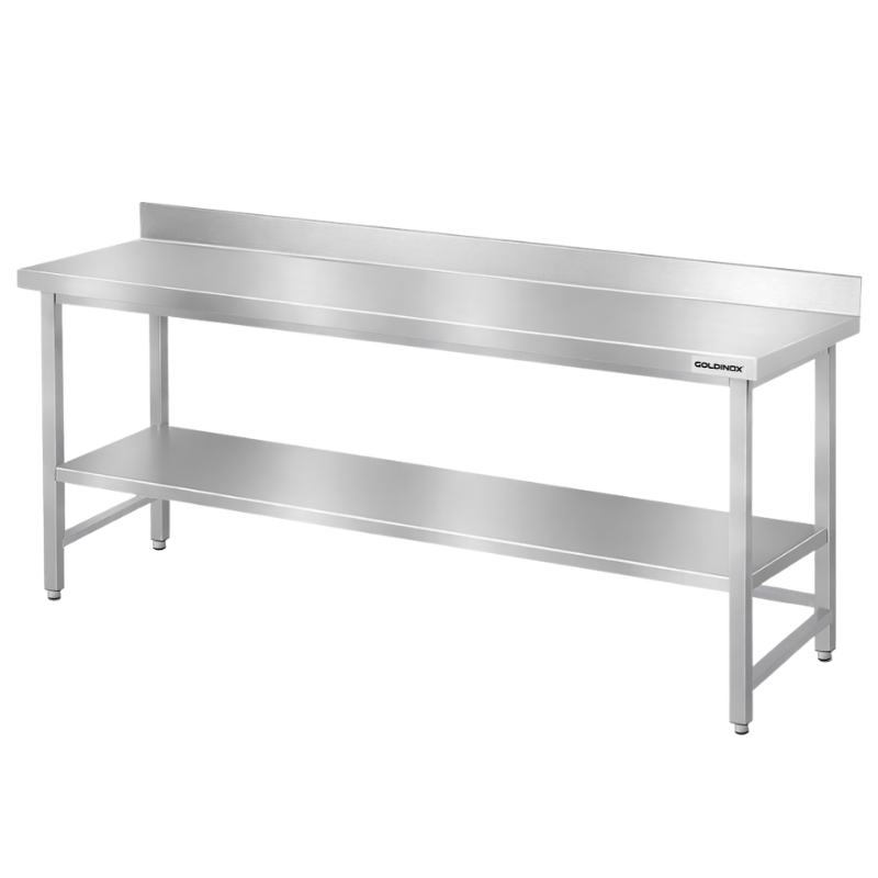 Table de travail en inox Bar 2000x600 mm avec renfort et dosseret PREMIUM - GOLDINOX
